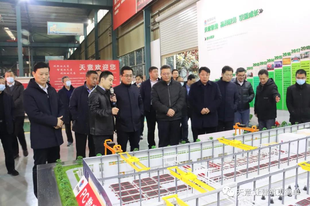 天意機(jī)械總經(jīng)理劉海龍向江副書記一行介紹了公司運(yùn)營(yíng)和裝配式建筑未來發(fā)展規(guī)劃等相關(guān)情況,并對(duì)天意機(jī)械裝配式建筑自動(dòng)化PC生產(chǎn)線項(xiàng)目進(jìn)行了詳細(xì)介紹。江副書記一行對(duì)天意機(jī)械創(chuàng)新產(chǎn)品的技術(shù)先進(jìn)性以及對(duì)裝配式建筑發(fā)展的引領(lǐng)和帶動(dòng)作用給予了高度贊揚(yáng)。并表示將結(jié)合本地實(shí)際情況,取長(zhǎng)補(bǔ)短,學(xué)習(xí)借鑒天意機(jī)械的好經(jīng)驗(yàn)好做法,把考察學(xué)習(xí)成果轉(zhuǎn)化為推動(dòng)本地企業(yè)發(fā)展的強(qiáng)大動(dòng)力和有力舉措。