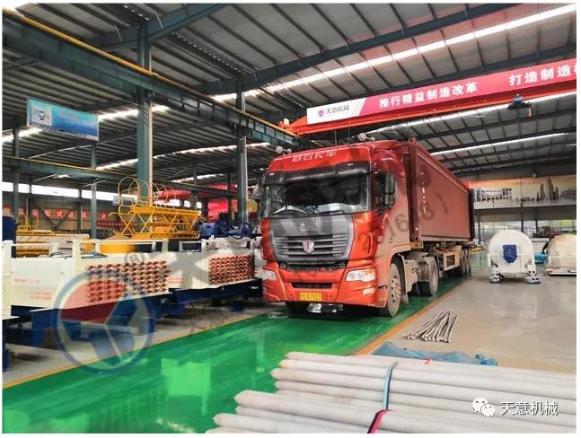 參展多,人氣旺,天意機械設(shè)備銷售情況持續(xù)向好,PC裝備、墻板裝備、保溫裝飾一體化板生產(chǎn)線等事業(yè)部在原有生產(chǎn)任務(wù)繁重的情況下,又陸續(xù)接到來自海外地區(qū)一批緊急求購訂單,隨著發(fā)貨量不斷增大,發(fā)貨車排起長龍,天意機械的貨物發(fā)運系統(tǒng)面臨著很大的挑戰(zhàn)。